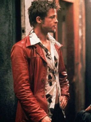 Fight Club Brad Pitt Red Leather Jacket