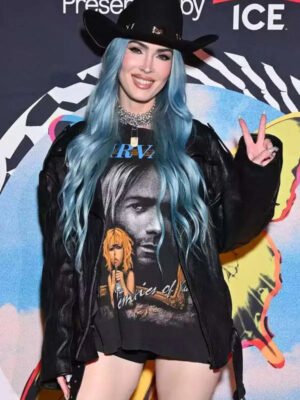 Coachella 2024 Megan Fox Black Oversized Leather Jacket