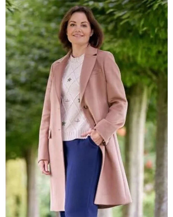 Lily TV-Movie A Scottish Love Scheme 2024 Erica Durance Pink Trench Coat