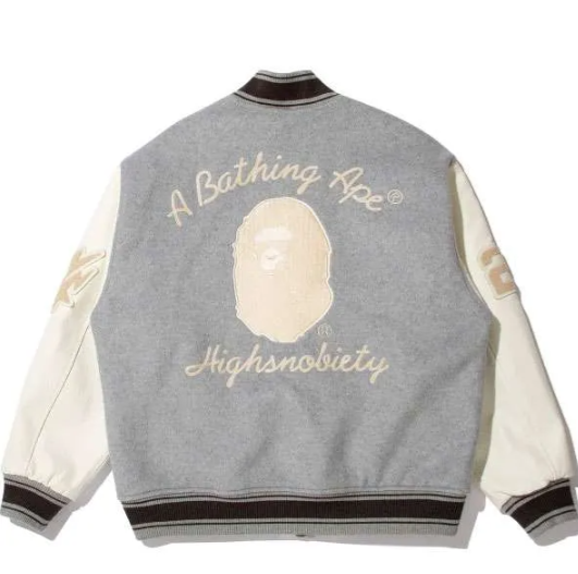 Bape x Highsnobiety Gray Varsity Jacket