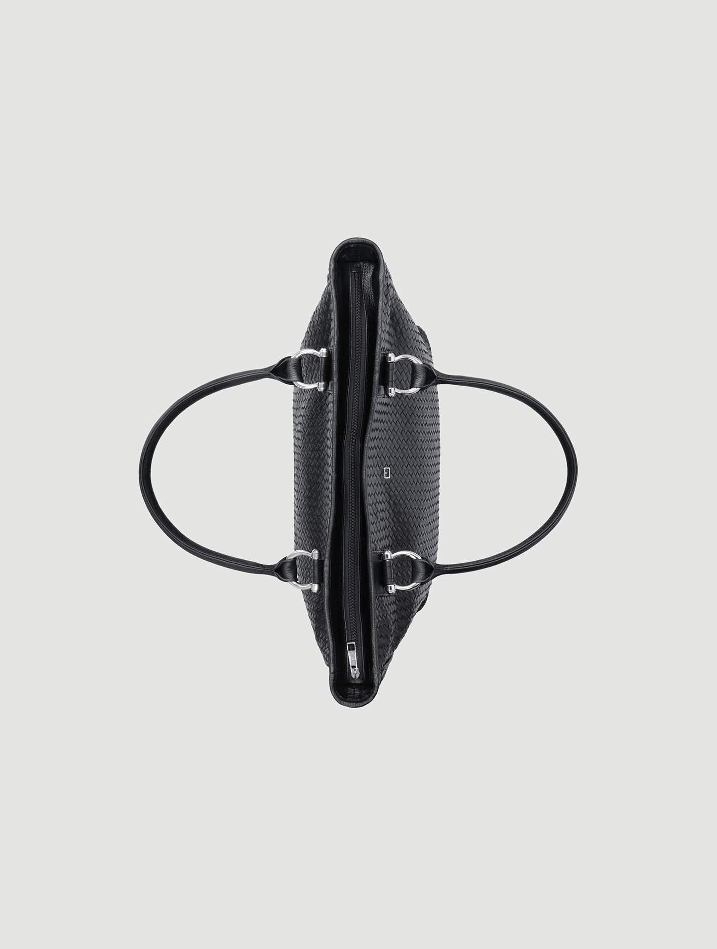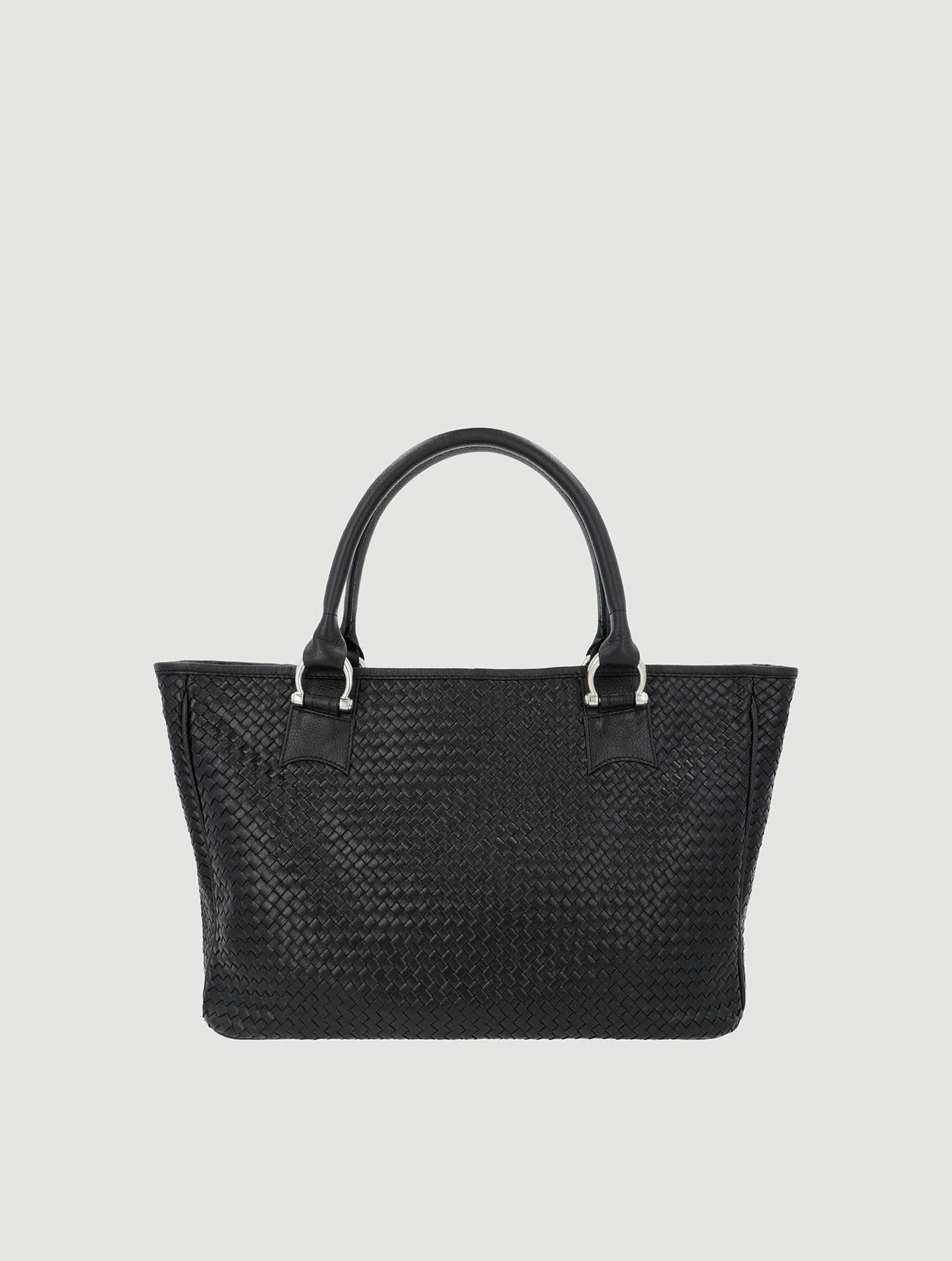 Double Handle Black Leather Woven Tote Bag?