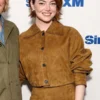 Bugonia Emma Stone Press Tour Brown Suede Jacket