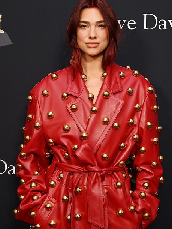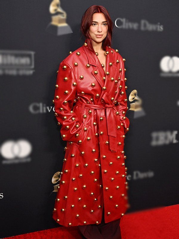 Dua Lipa Red Leather Coat Pre-grammy Gala 2024