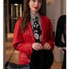 Lily Collins Emily in Paris S04 Red Leather Coat