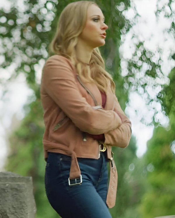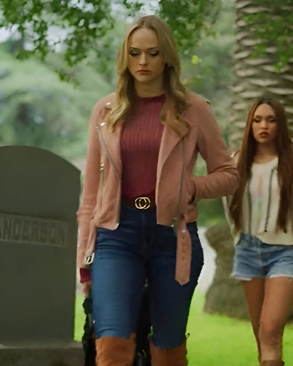 Hustlers Take All 2024 Kyla Burke Pink Leather Cafe Racer Jacket