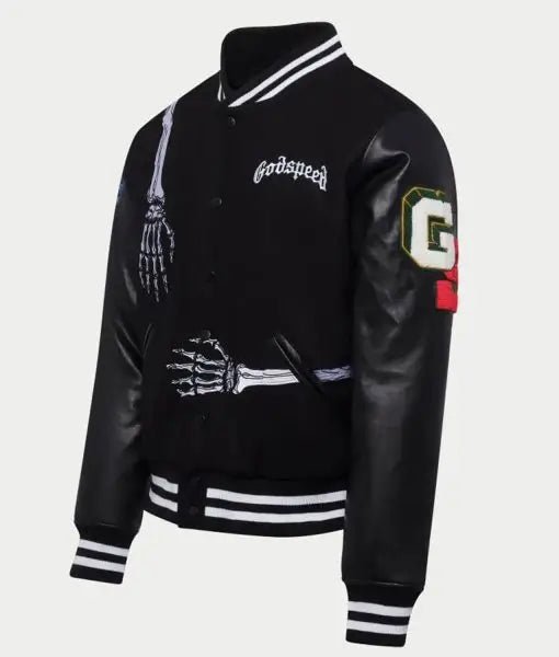 James Blake Godspeed Rod Skull Varsity Letterman Jacket