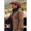 Josh Lucas Yellowstone John Dutton Beige Quilted Waxed Cotton Jacket