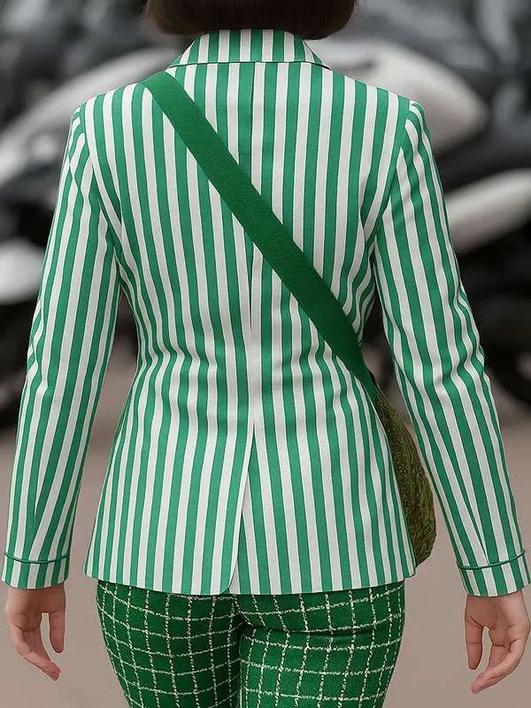 Lily Collins Emily in Paris Green Strip Blazer