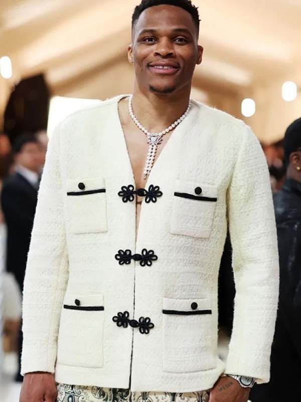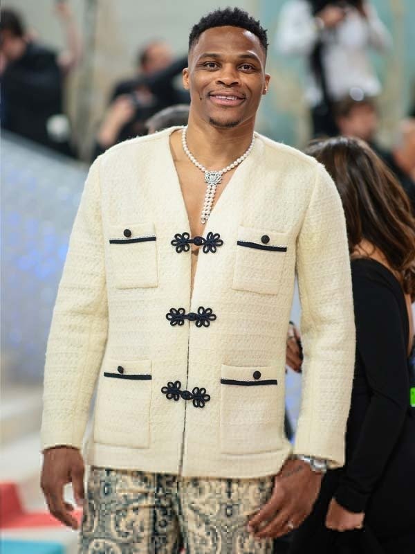Russell Westbrook Met Gala Red Carpet 2023 White Jute Coat