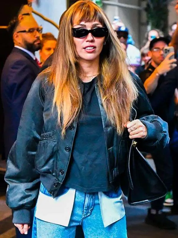 New York City 2025 Miley Cyrus Polyester Black Bomber Jacket