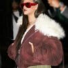 Rihanna Paris Fashion Week Maroon Jacket