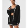 The Flip Off 2025 Christina Hall Black & White Stripe Trim Cardigan
