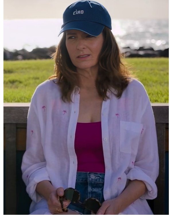 The Four Seasons 2025 Tina Fey Forte Pink Palm Tree White Shirt