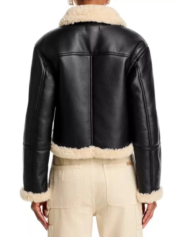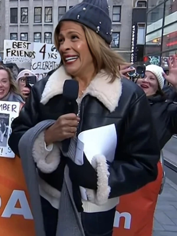 Today Show Hoda Kotb Black Shearling Trim Leather Jacket